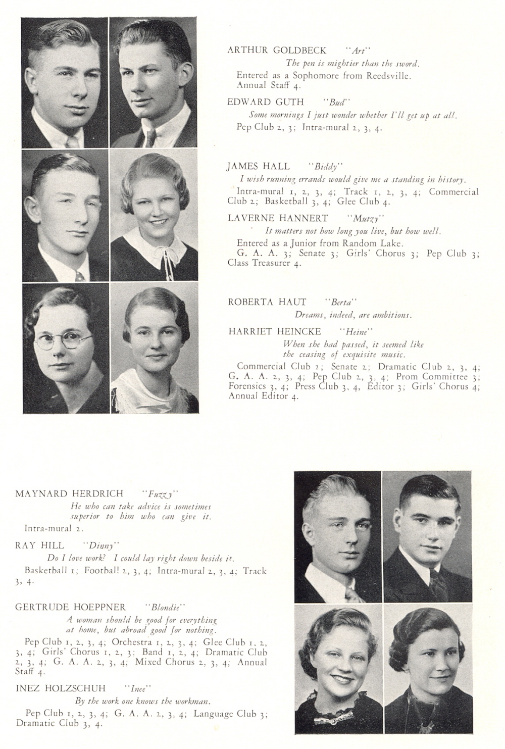 1936 Plymouth High School, Page 12: Arthur Goldbeck, Edward Guth, James Hall, Laverne Hannert, Roberta Haut, Harriet Heincke, Maynard Herdrich, Ray Hill, Gertrude Hoeppner, Inez Holzschuh.