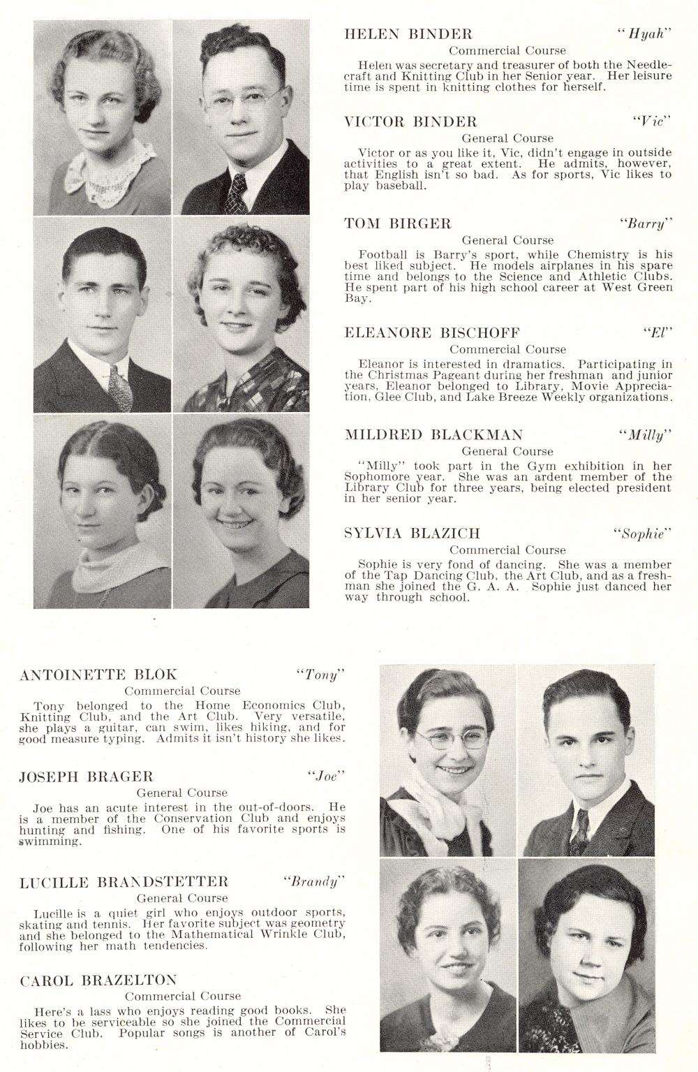 1936 Sheboygan High School, Page 26: Helen Binder, Victor Binder, Tom Birger, Eleanore Bischoff, Mildred Blackman, Sylvia Blazich, Antoinette Blok, Joseph Brager, Lucille Brandstetter, Carol Brazelton.