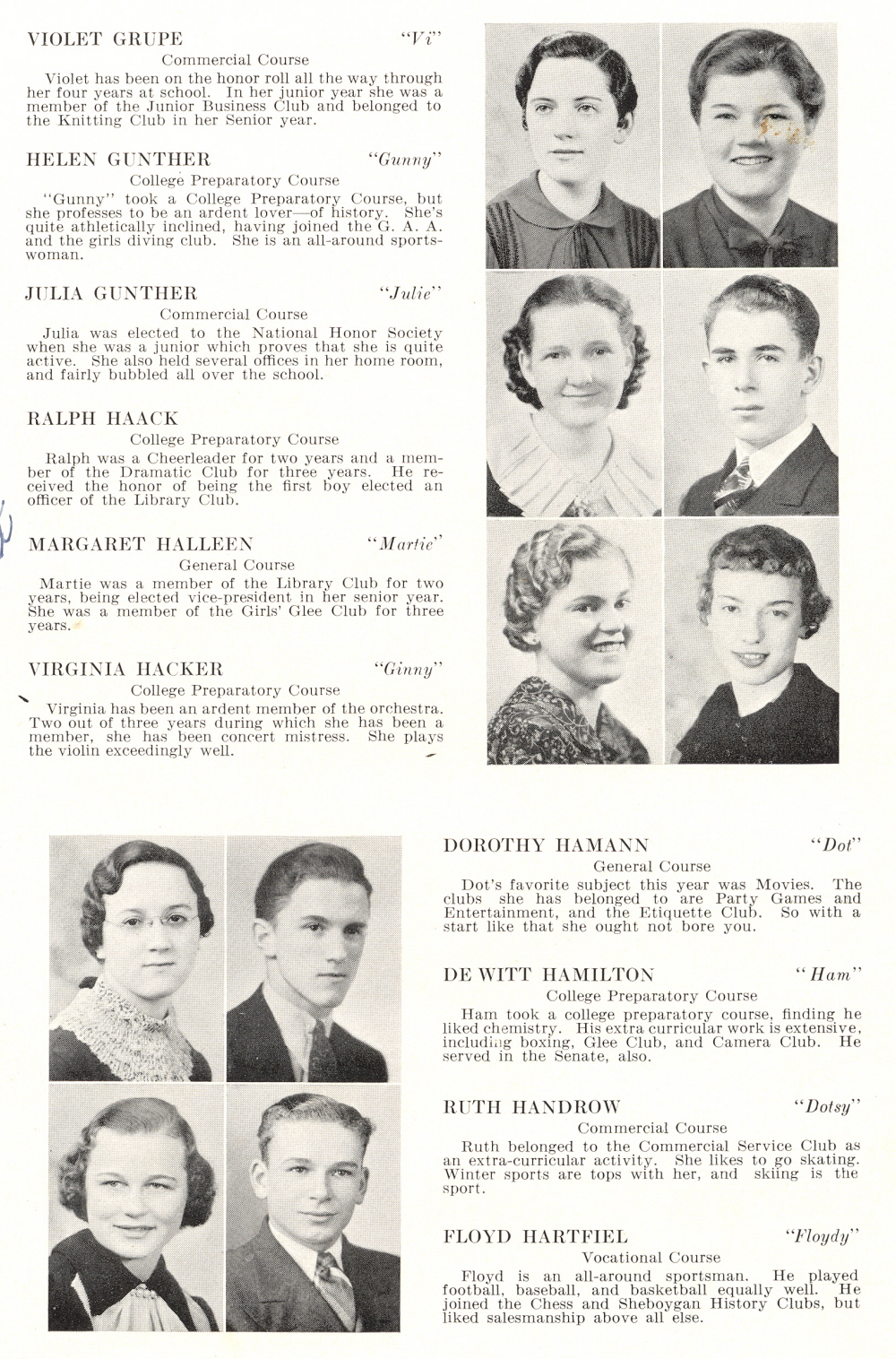 1936 Sheboygan High School, Page 35: Violet Grupe, Helen Gunther, Julia Gunther, Ralph Haack, Margaret Halleen, Virginia Hacker, Dorothy Hamann, De Witt Hamilton, Ruth Handrow, Floyd Hartfiel.