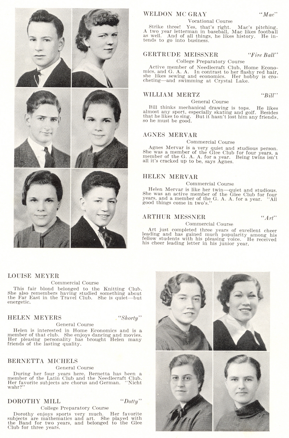 1936 Sheboygan High School, Page 44: Weldon Mc Gray, Gertrude Meissner, William Mertz, Agnes Mervar, Helen Mervar, Arthur Messner, Louise Meyer, Helen Meyers, Bernetta Michels, Dorothy Mill.