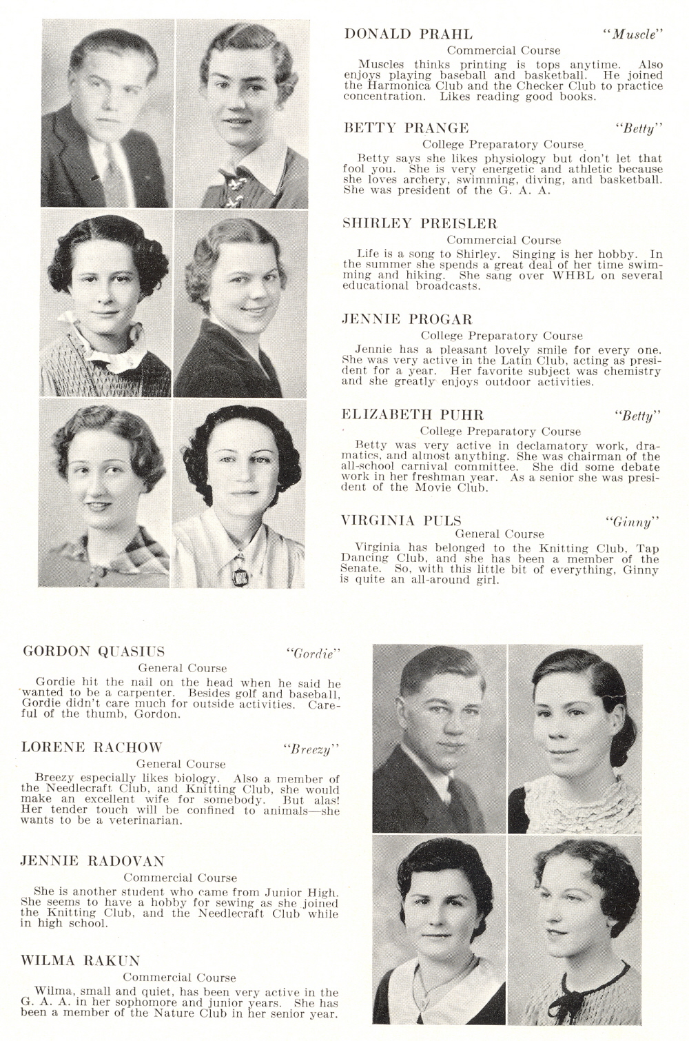 1936 Sheboygan High School, Page 48: Donald Prahl, Betty Prange, Shirley Preisler, Jennie Progar, Elizabeth Puhr, Virginia Puls, Gordon Quasius, Lorene Rachow, Jennie Radovan, Wilma Rakun.