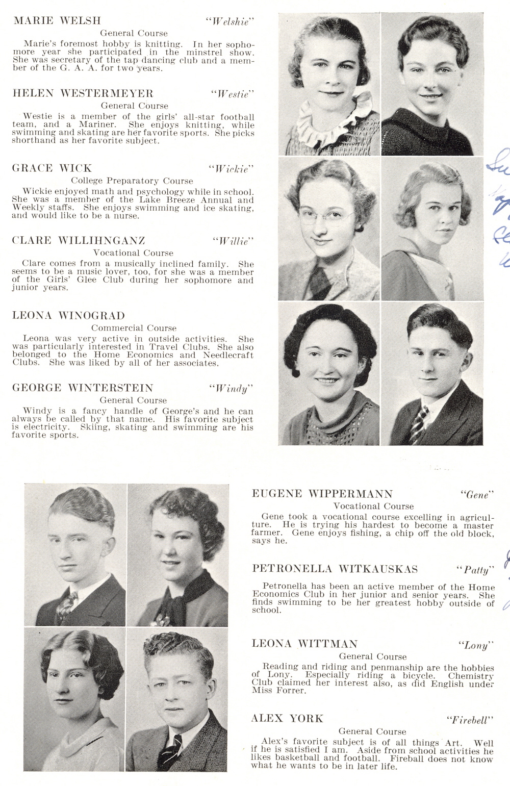 1936 Sheboygan High School, Page 59: Mark Welsh, Helen Westermeyer, Grace Wick, Clare Willihnganz, Leona Winograd, George Winterstein, Eugene Wippermann, Petronella Witkauskas, Leona Wittman, Alex York.