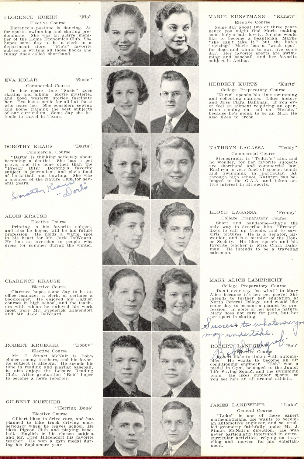 1937 Sheboygan High School, Page 15: Florence Koehn, Eva Kolar, Dorothy Kraus, Alois Krause, Clarence Krause, Robert Krueger, Gilbert Kuether, Marie Kunstmann, Herbert Kurtz, Kathryn Lagassa, Lloyd Lagassa, Mary Alice Lambrecht, Robert Landgraf, James Landwehr.