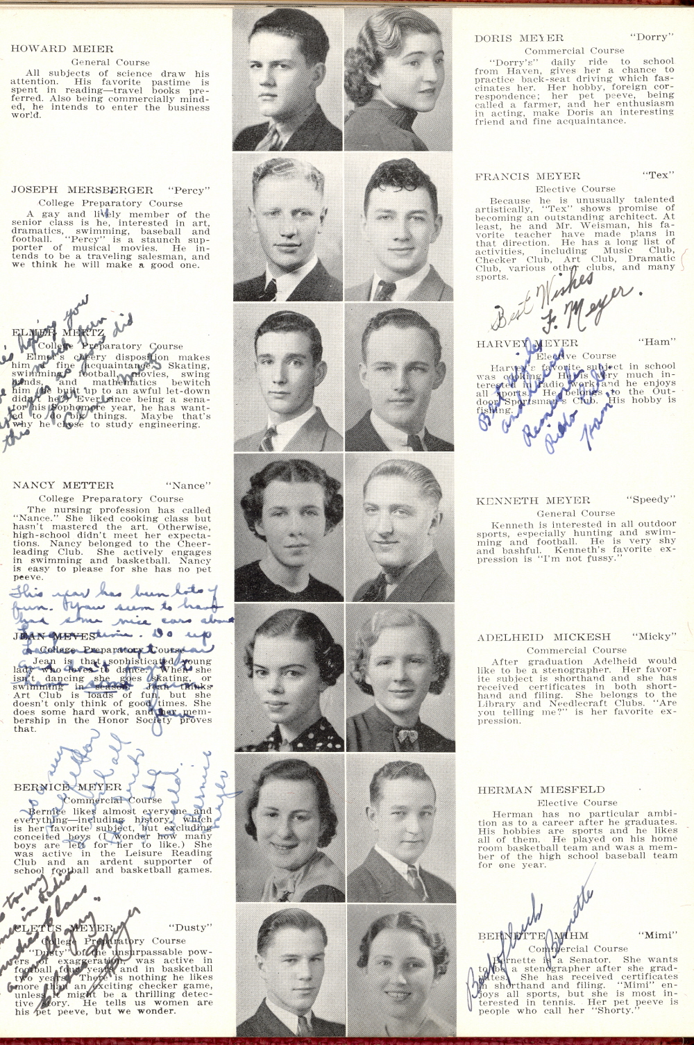 1937 Sheboygan High School, Page 19: Howard Meier, Joseph Mersberger, Elmer Mertz, Nancy Metter, Jean Meves, Bernice Meyer, Cletus Meyer, Doris Meyer, Francis Meyer, Harvey Meyer, Kenneth Meyer, Adelheid Mickesh, Herman Miesfeld, Bernette Mihm.