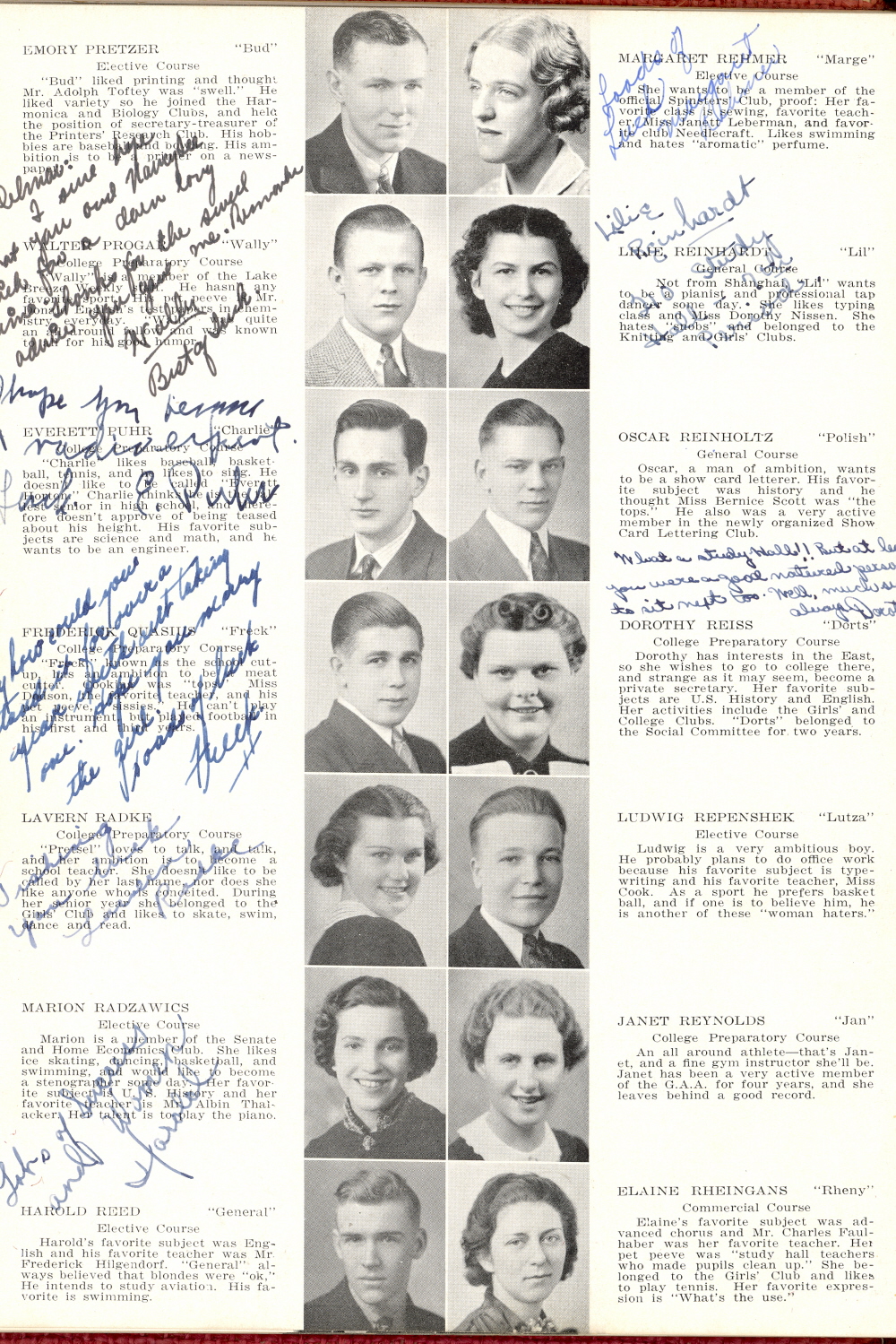 1937 Sheboygan High School, Page 23: Emory Pretzer, Walter Progar, Everett Puhr, Frederick Quasius, Lavern Radke, Marion Radzawics, Harold Reed, Margaret Rehmer, Lilie Reinhardt, Oscar Reinholtz, Dorothy Reiss, Ludwig Repenshek, Janet Reynolds, Elaine Rheingans.