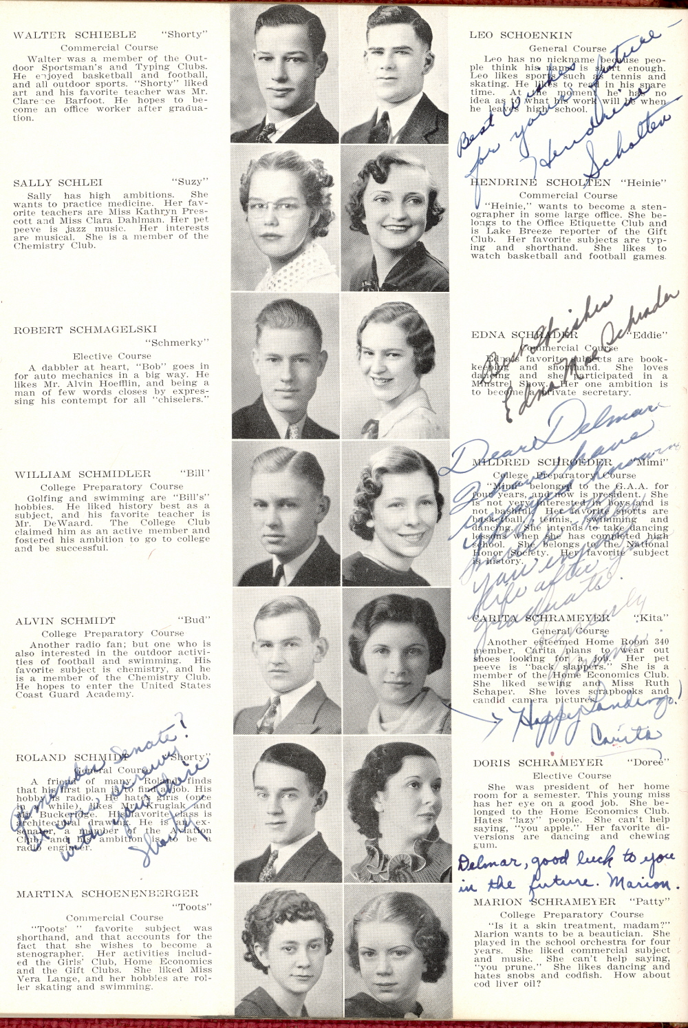 1937 Sheboygan High School, Page 25: Walter Schieble, Sally Schlei, Robert Schmagelski, William Schmidler, Alvin Schmidt, Roland Schmidt, Martina Schoenenberger, Leo Schoenkin, Hendrine Scholten, Edna Schrader, Mildred Schroeder, Carita Schrameyer, Doris Schrameyer, Marion Schrameyer.