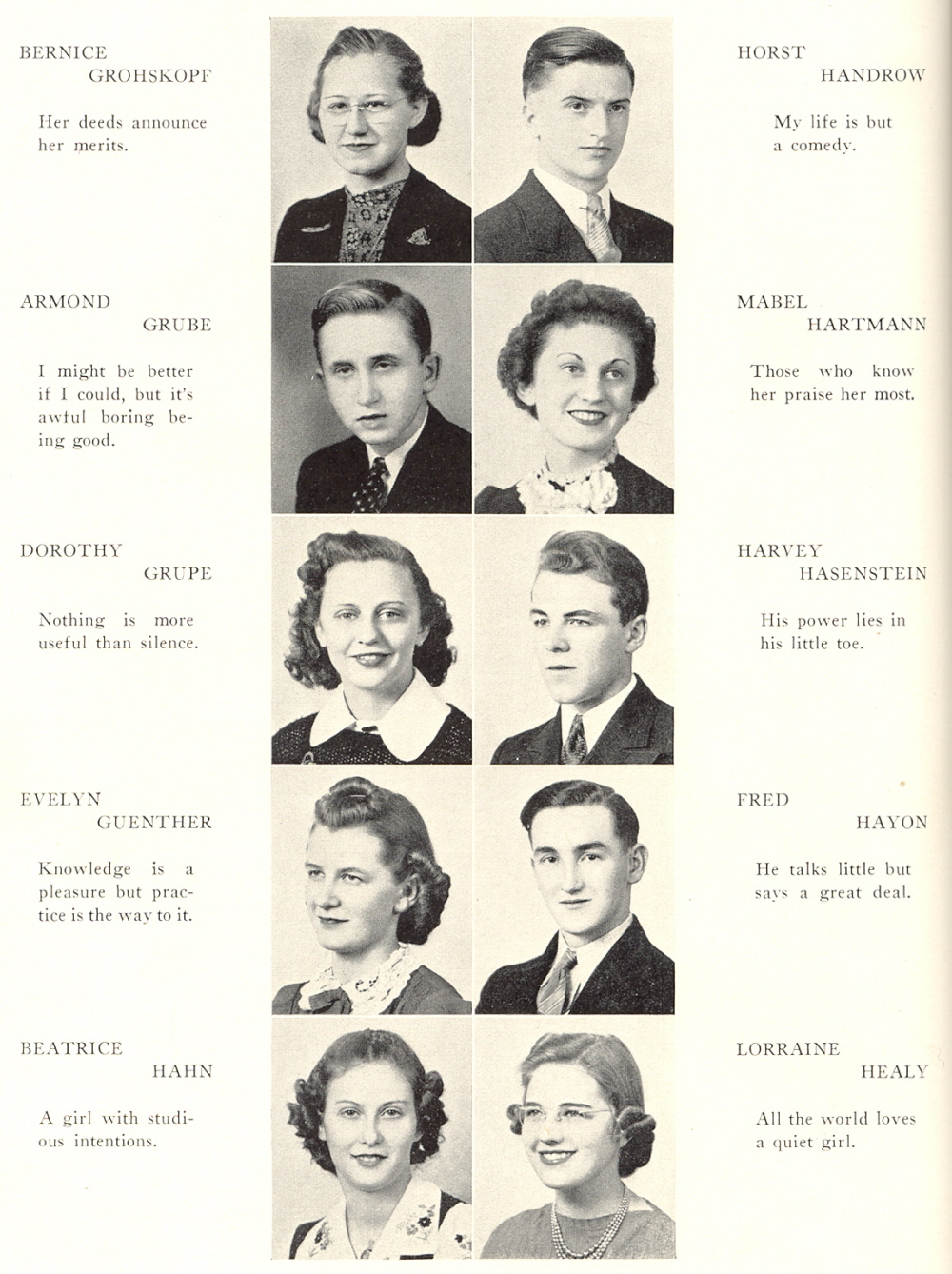 1939 Sheboygan North High School, Page 30: Bernice Grohskopf, Armond Grube, Dorothy Grupe, Evelyn Guenther, Beatrice Hahn, Horst Handrow, Mabel Hartmann, Harvey Hasenstein, Fred Hayon, Lorraine Healy.