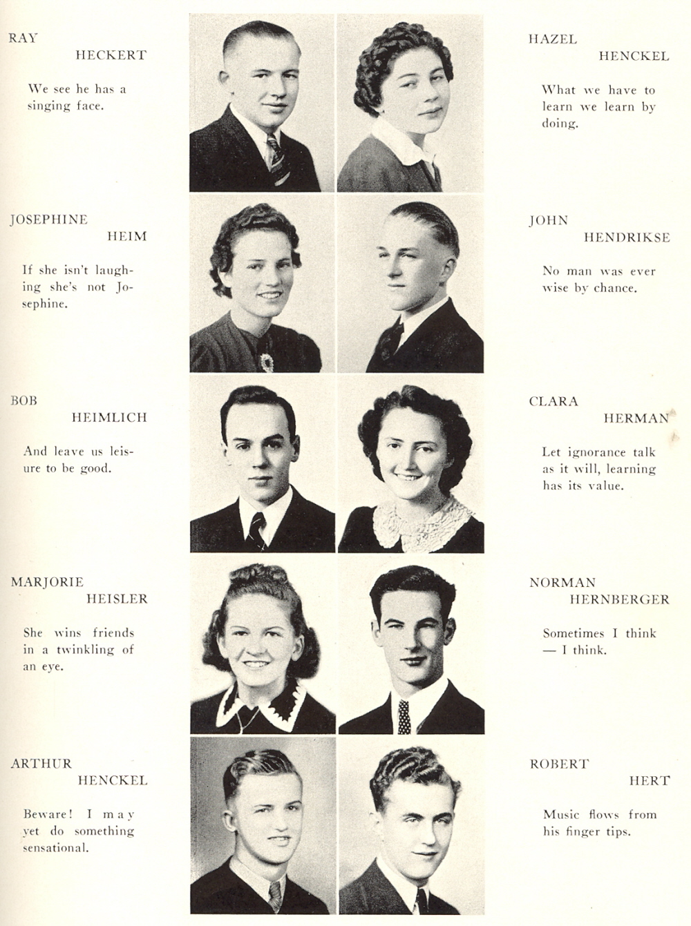 1939 Sheboygan North High School, Page 31: Ray Heckert, Josephine Heim, Bob Heimlich, Marjorie Heisler, Arthur Henckel, Hazel Henckel, John Hendrikse, Clara Herman, Norman Hernberger, Robert Hert.