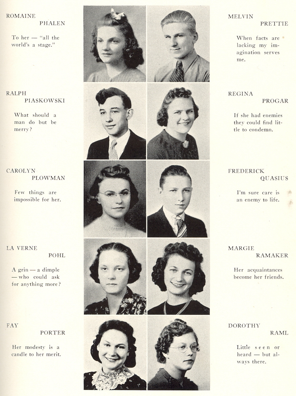 1939 Sheboygan North High School, Page 39: Romaine Phalen, Ralph Piaskowski, Carolyn Plowman, La Verne Pohl, Fay Porter, Melvin Prettie, Regina Progar, Frederick Quasius, Margie Ramaker, Dorothy Raml.
