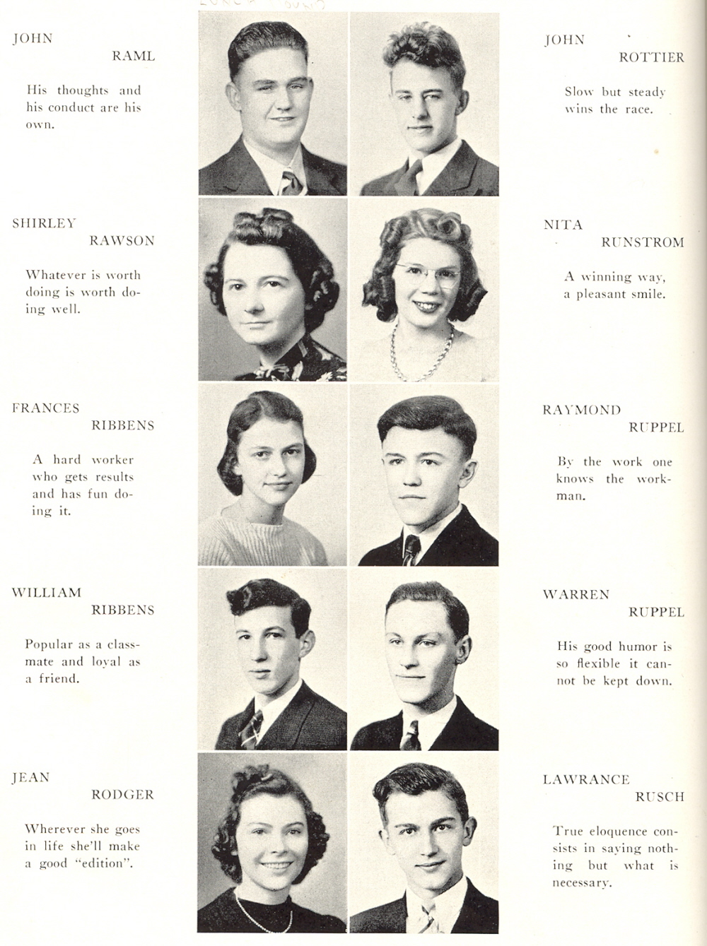 1939 Sheboygan North High School, Page 40: John Raml, Shirley Rawson, Frances Ribbens, William Ribbens, Jean Rodger, John Rottier, Nita Runstrom, Raymond Ruppel, Warren Ruppel, Lawrence Rusch.