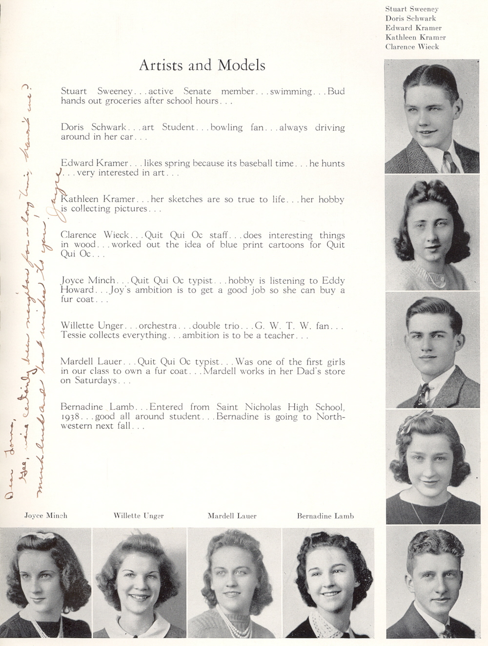 1940 Plymouth High School, Page 67: Stuart Sweeney, Doris Schwark, Edward Kramer, Kathleen Kramer, Clarence Wieck, Joyce Minch, Willette Unger, Mardell Lauer, Bernadine Lamb.