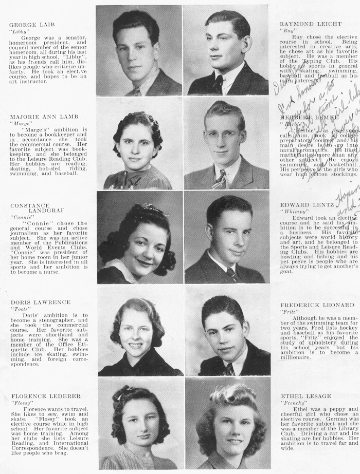 1940 Sheboygan Central High School, Page 30: George Laib, Raymond Leicht, Majorie Lamb, Herbert Lemke, Constance Landgraf, Edward Lentz, Doris Lawrence, Frederick Leonard, Florence Lederer, Ethel Lesage.