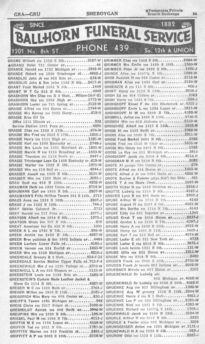 1940 Sheboygan Telephone Book, Page 24: