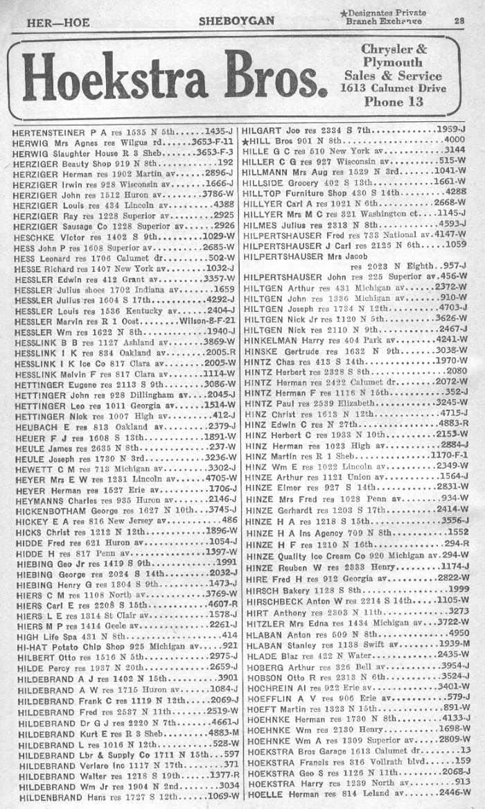 1940 Sheboygan Telephone Book, Page 28: