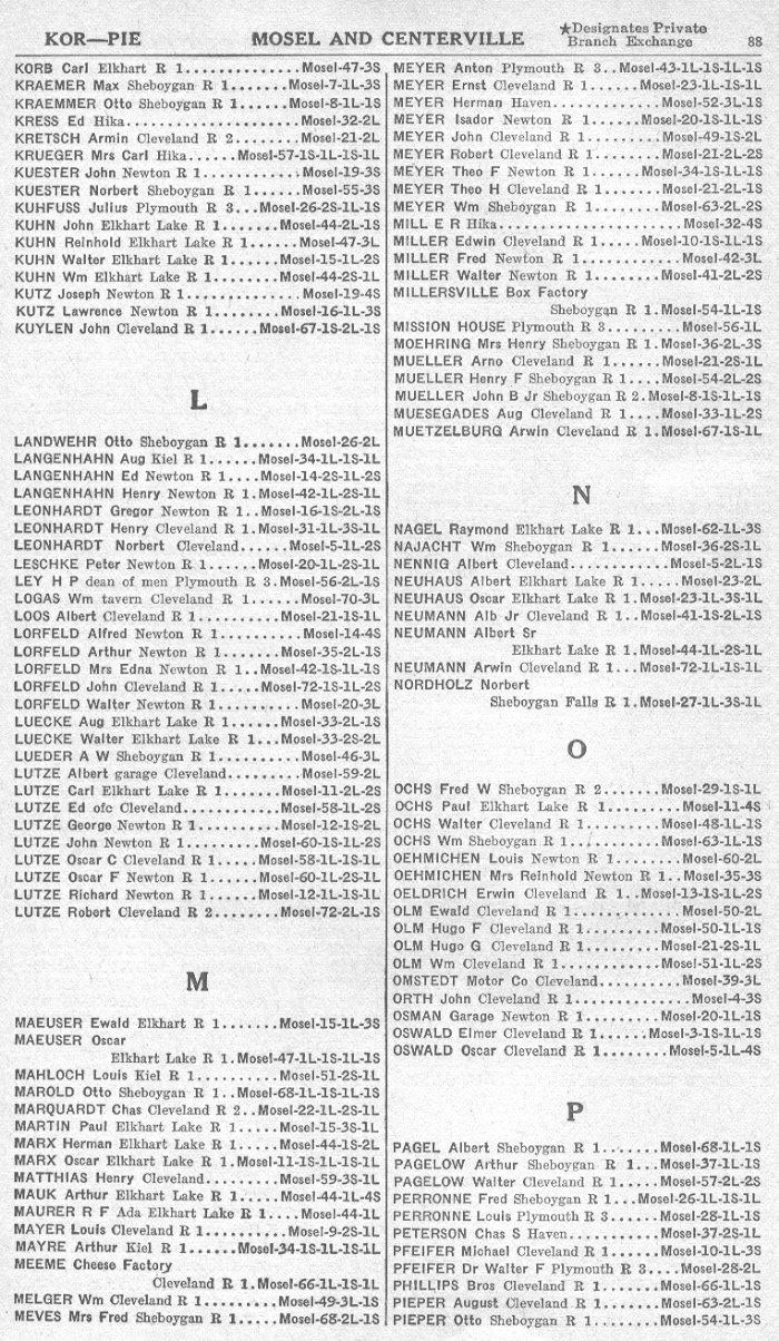 1940 Mosel and Centerville Telephone Book, Page 88: