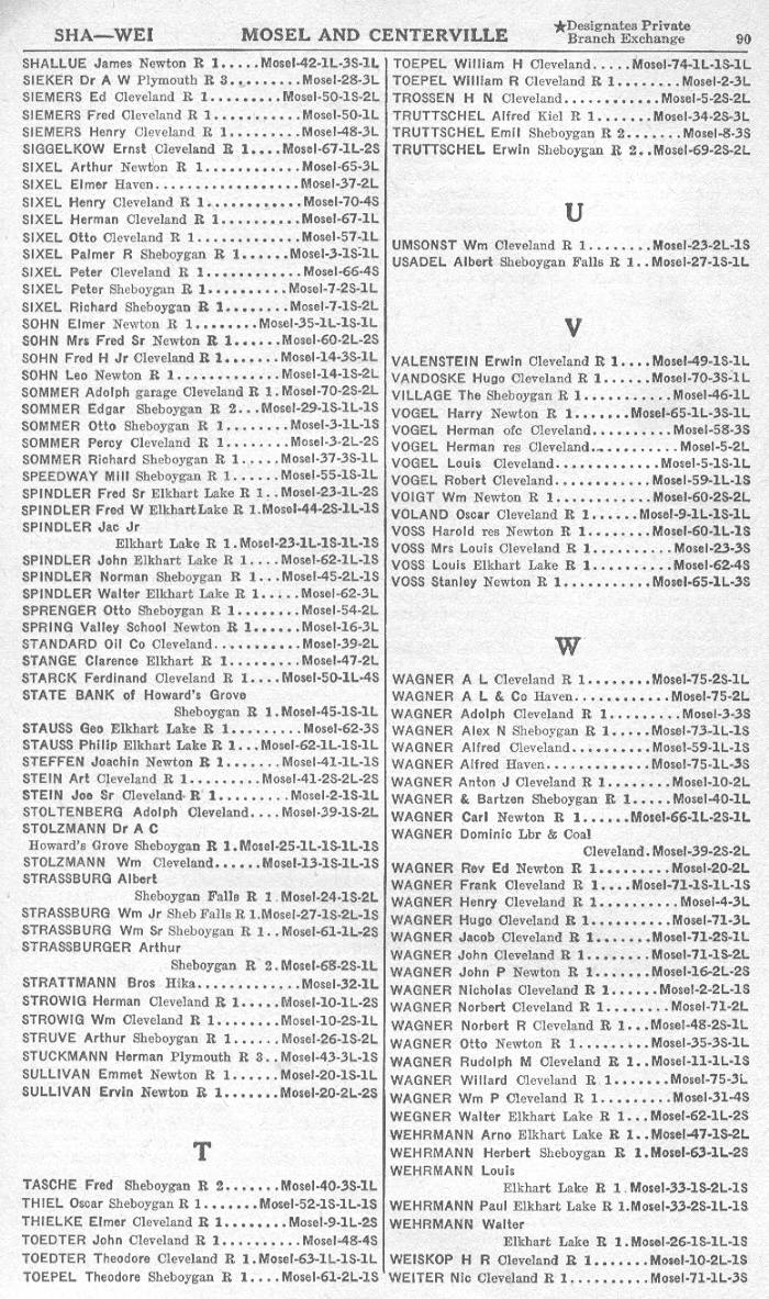 1940 Mosel and Centerville Telephone Book, Page 90: