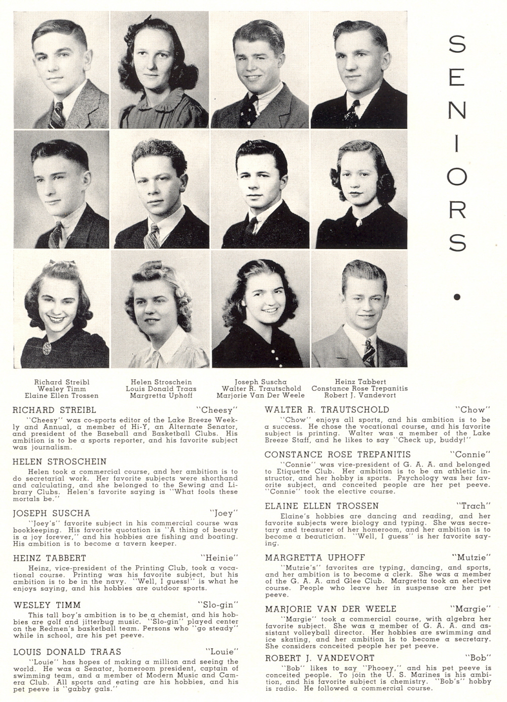 High School, Page 44: Richard Streibl, Helen Stroschein, Joseph Suscha, Heinz Tabbert, Wesley Timm, Louis Donald Traas, Walter R. Trautschold, Constance Rose Trepanitis, Elaine Ellen Trossen, Margretta Uphoff, Marjorie Van Der Weele, Robert J. Vandevort.