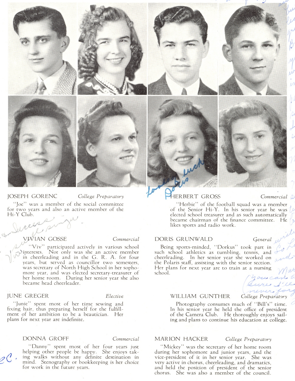 1941 Sheboygan North High School, Page 21: Joseph Gorenc, Herbert Gross, Vivian Gosse, Doris Grunwald, June Gregor, William Gunther, Donna Groff, Marion Hacker.
