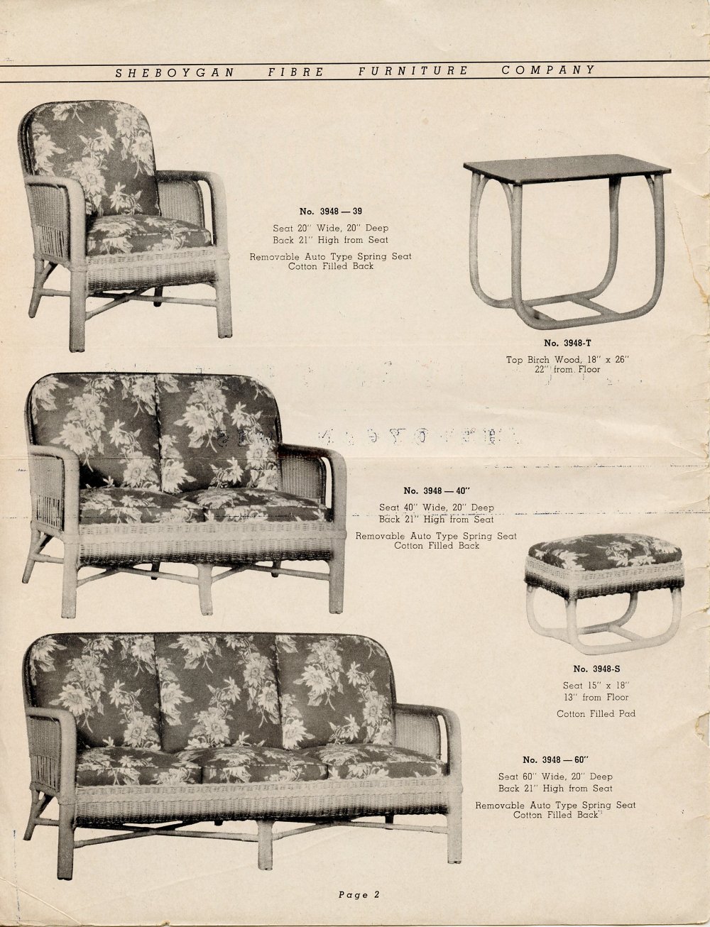 1942 Sheboygan Fibre Furniture Company Catalogue, Page 2.