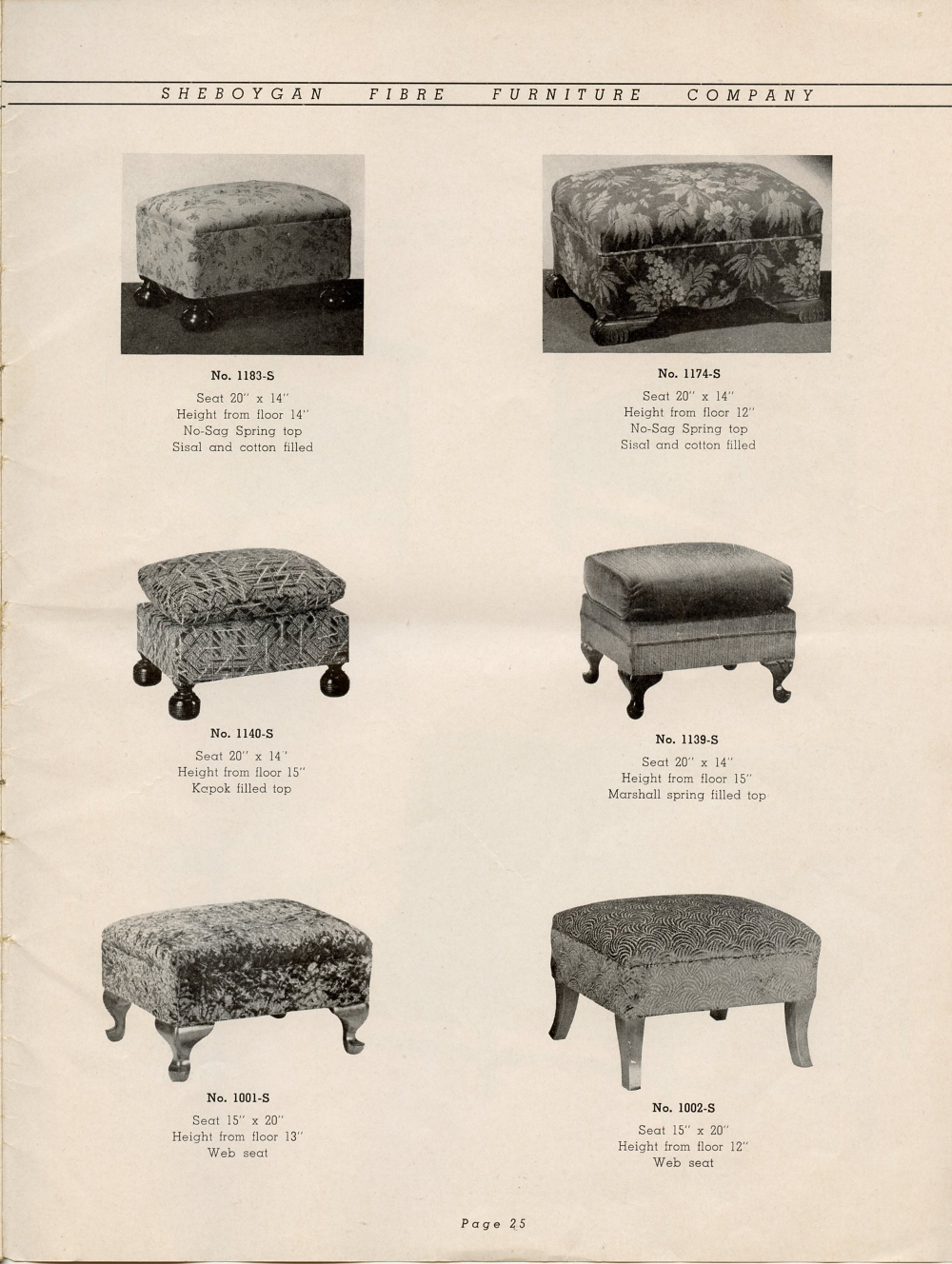 1942 Sheboygan Fibre Furniture Company Catalogue, Page 25.
