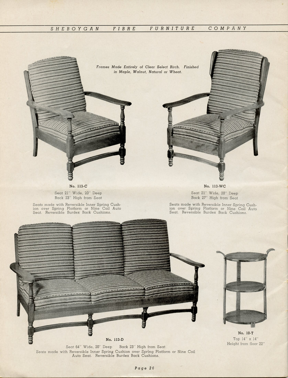 1942 Sheboygan Fibre Furniture Company Catalogue, Page 26.