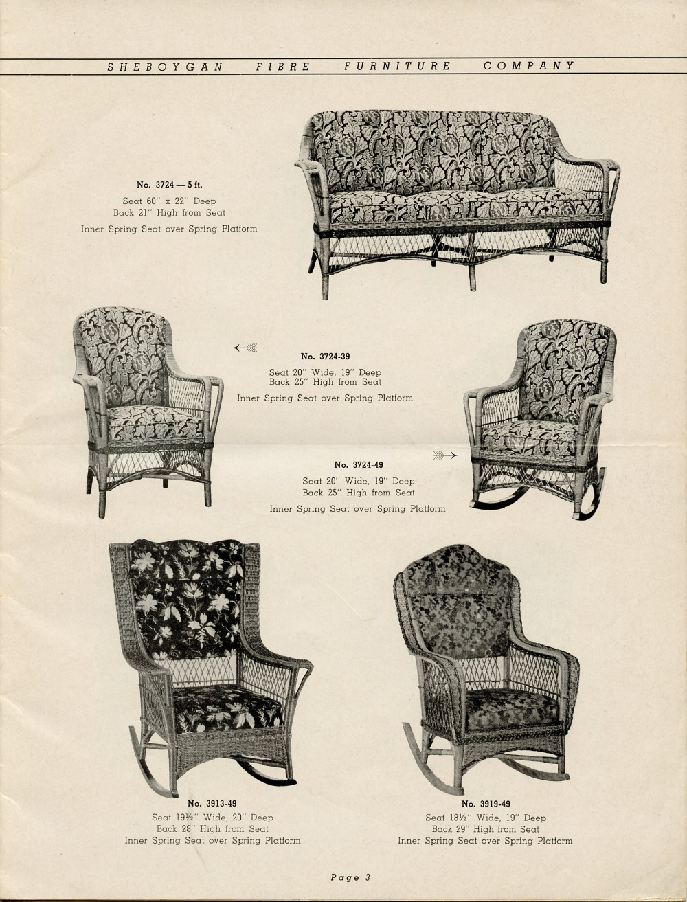 1942 Sheboygan Fibre Furniture Company Catalogue, Page 3.