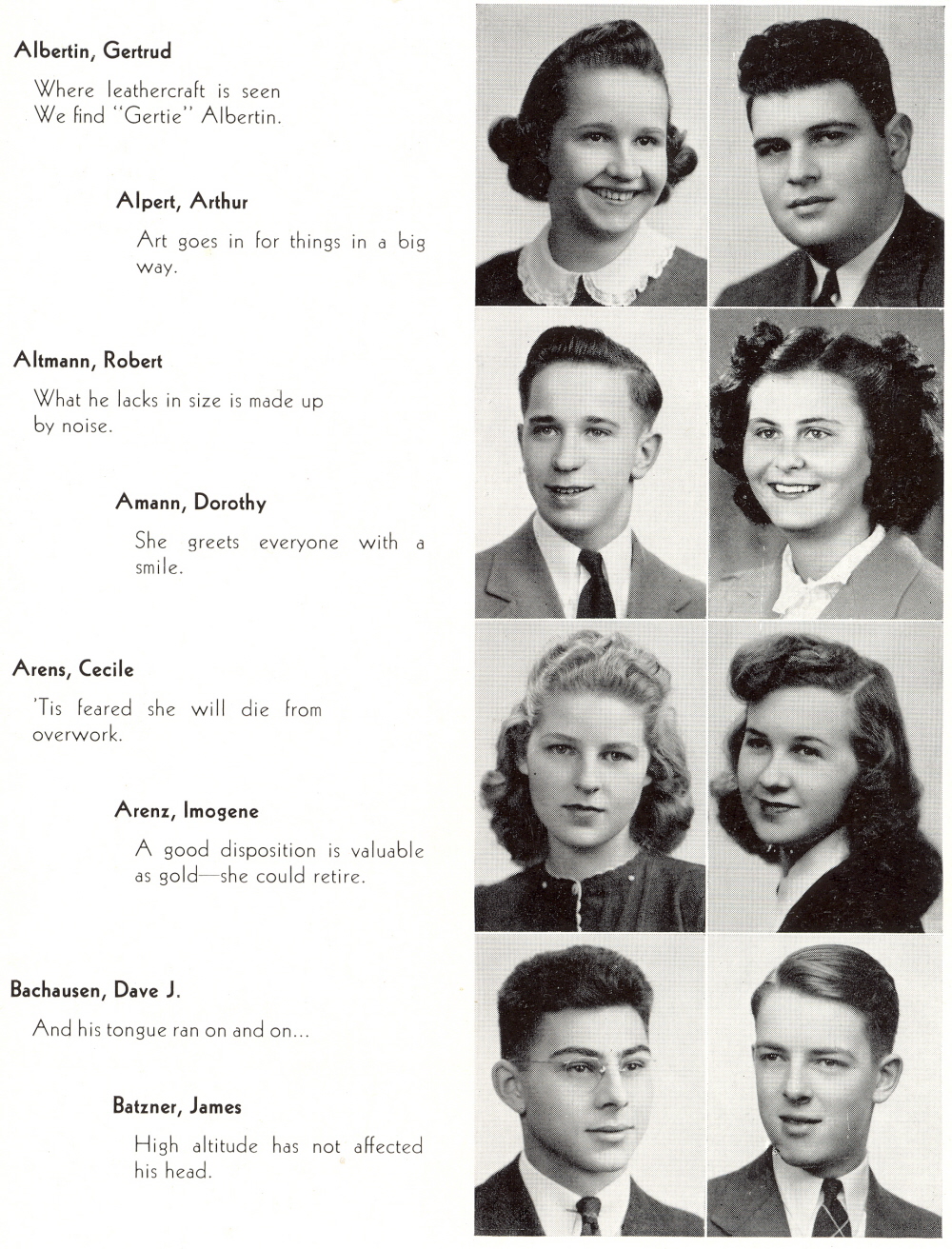 1942 Sheboygan North High School, Page 19: Gertrud Albertin, Arthur Alpert, Robert Altmann, Dorothy Amann, Cecile Arens, Imogene Arenz, Dave Bachausen, James Batzner.
