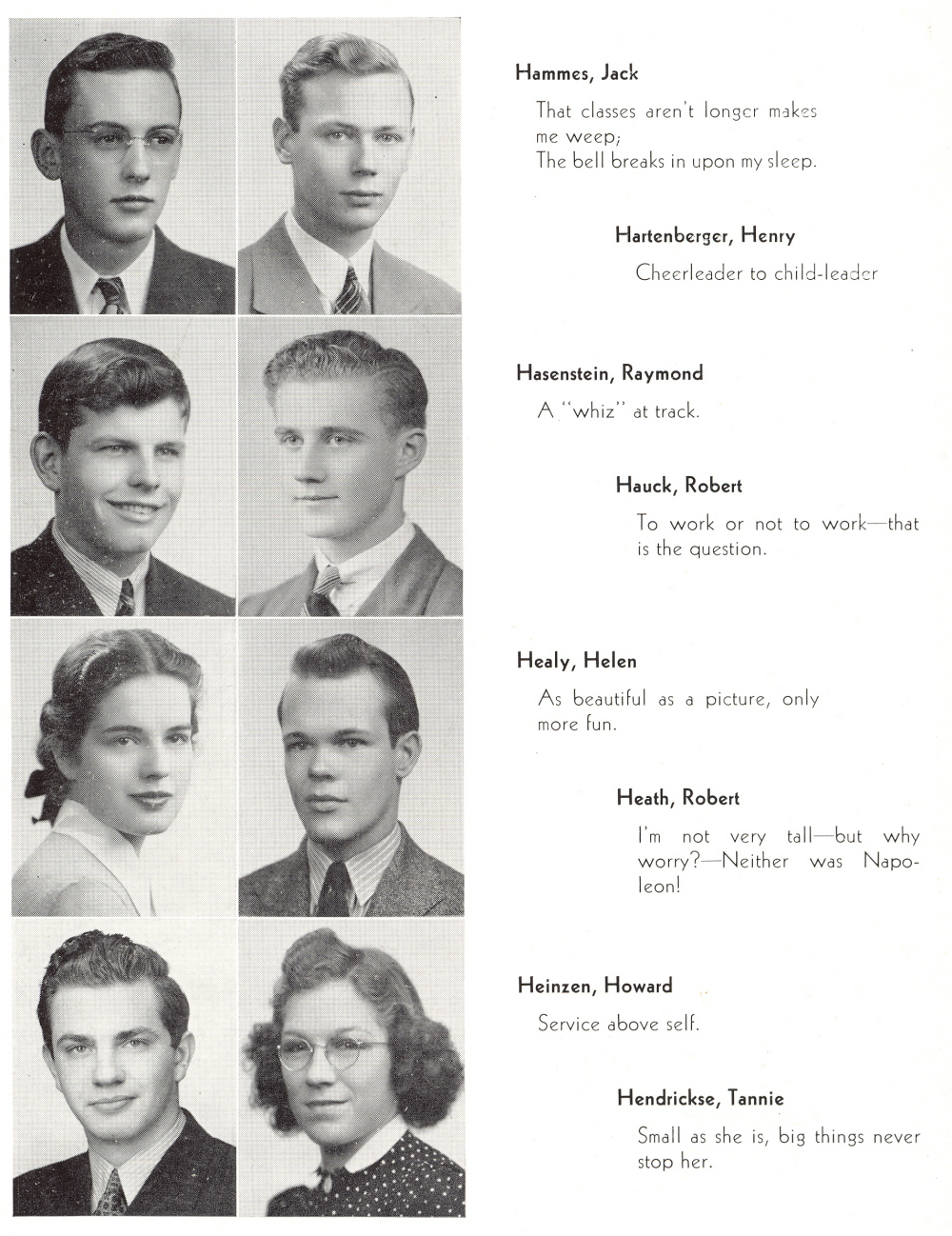 1942 Sheboygan North High School, Page 26: Jack Hammes, Henry Hartenberger, Raymond Hasenstein, Robert Hauck, Helen Healy, Robert Heath, Howard Heinzen, Tannie Hendrickse.
