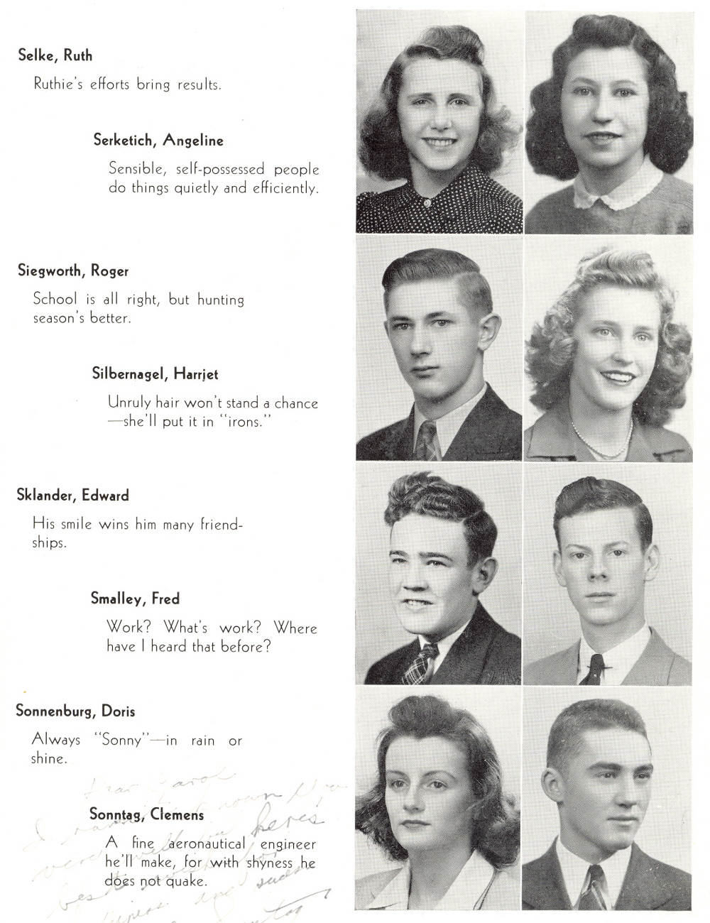 1942 Sheboygan North High School, Page 39: Ruth Selka, Angeline Serketich, Roger Siegworth, Harriet Silbernagel, Edward Sklander, Fred Smalley, Doris Sonnenburg, Clemens Sonntag.