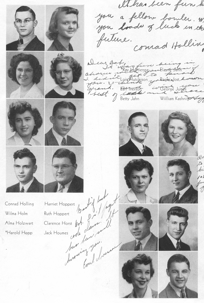 1943 Sheboygan Central High School, Page 77: Conrad Holling, Wilma Holm, Alma Holzwart, Harold Hopp, Harriet Hoppert, Ruth Hoppert, Clarence Horst, Jack Houmes, Ray Hurtienne, Lois Hutchison, Earl Iverson, Betty Jahn, Elayne Jahn, Roger Jost, George Jumes, William Kashnig.