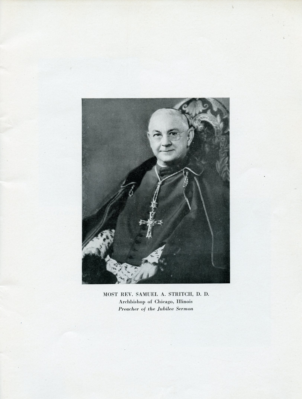 1945 Holy Name Church, Centennial Anniversary, 1845-1945, Sheboygan, Wisconsin, Page 11: Most Reverend Samuel A. Strich, D. D., Archbishop of Chicago, Illinois, Preacher of the Jubilee Sermon.