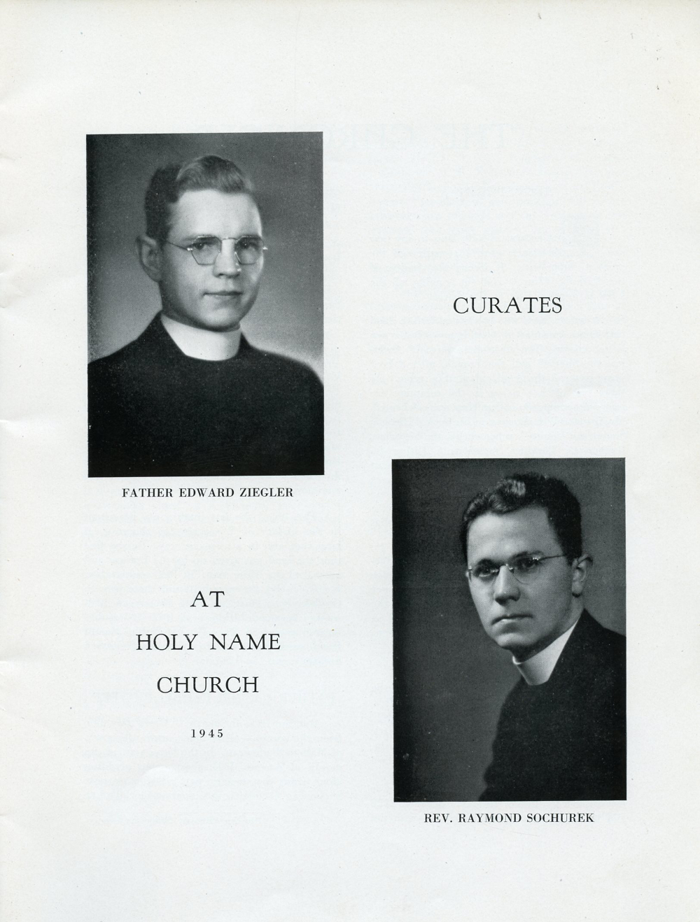 1945 Holy Name Church, Centennial Anniversary, 1845-1945, Sheboygan, Wisconsin, Page 13: Father Edward Ziegler, Rev. Raymond Sochurek, Curates at Holy Name Church, 1945.