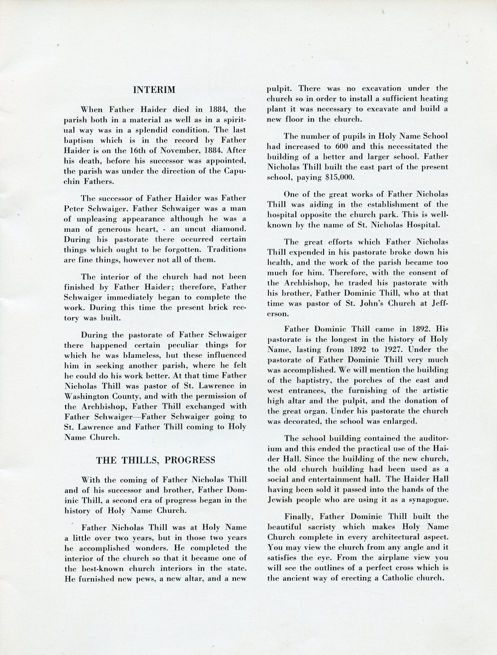 1945 Holy Name Church, Centennial Anniversary, 1845-1945, Sheboygan, Wisconsin, Page 17: The Chronicle, Interim, The Thills, Progress.