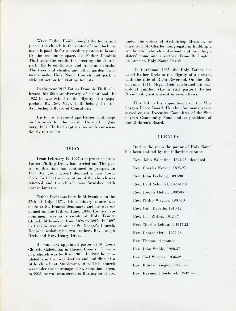 1945 Holy Name Church, Centennial Anniversary, 1845-1945, Sheboygan, Wisconsin, Page 18: The Chronicle, Today, Curates.