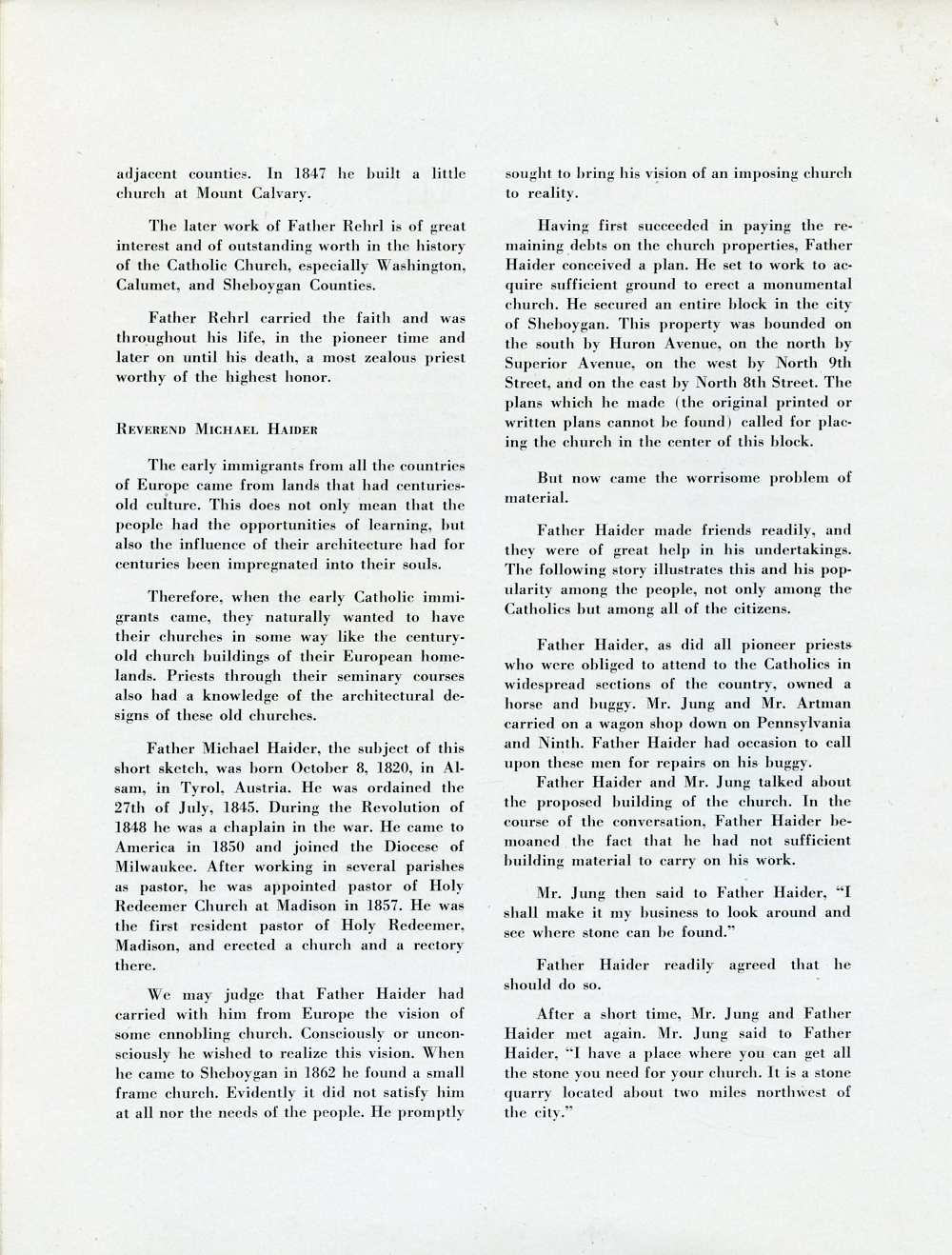 1945 Holy Name Church, Centennial Anniversary, 1845-1945, Sheboygan, Wisconsin, Page 22: Four Priests, Reverend Michael Haider.