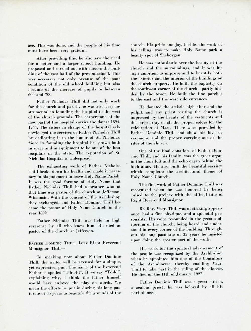 1945 Holy Name Church, Centennial Anniversary, 1845-1945, Sheboygan, Wisconsin, Page 27: Four Priests, Father Dominic Thill.