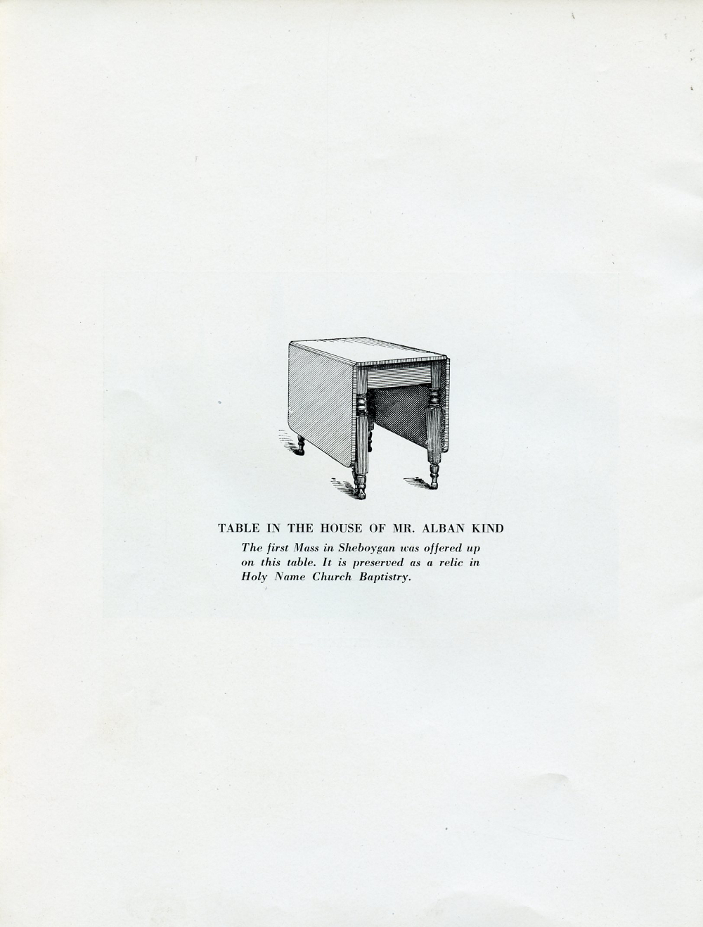 1945 Holy Name Church, Centennial Anniversary, 1845-1945, Sheboygan, Wisconsin, Page 32: Table in the House of Mr. Alban Kind.