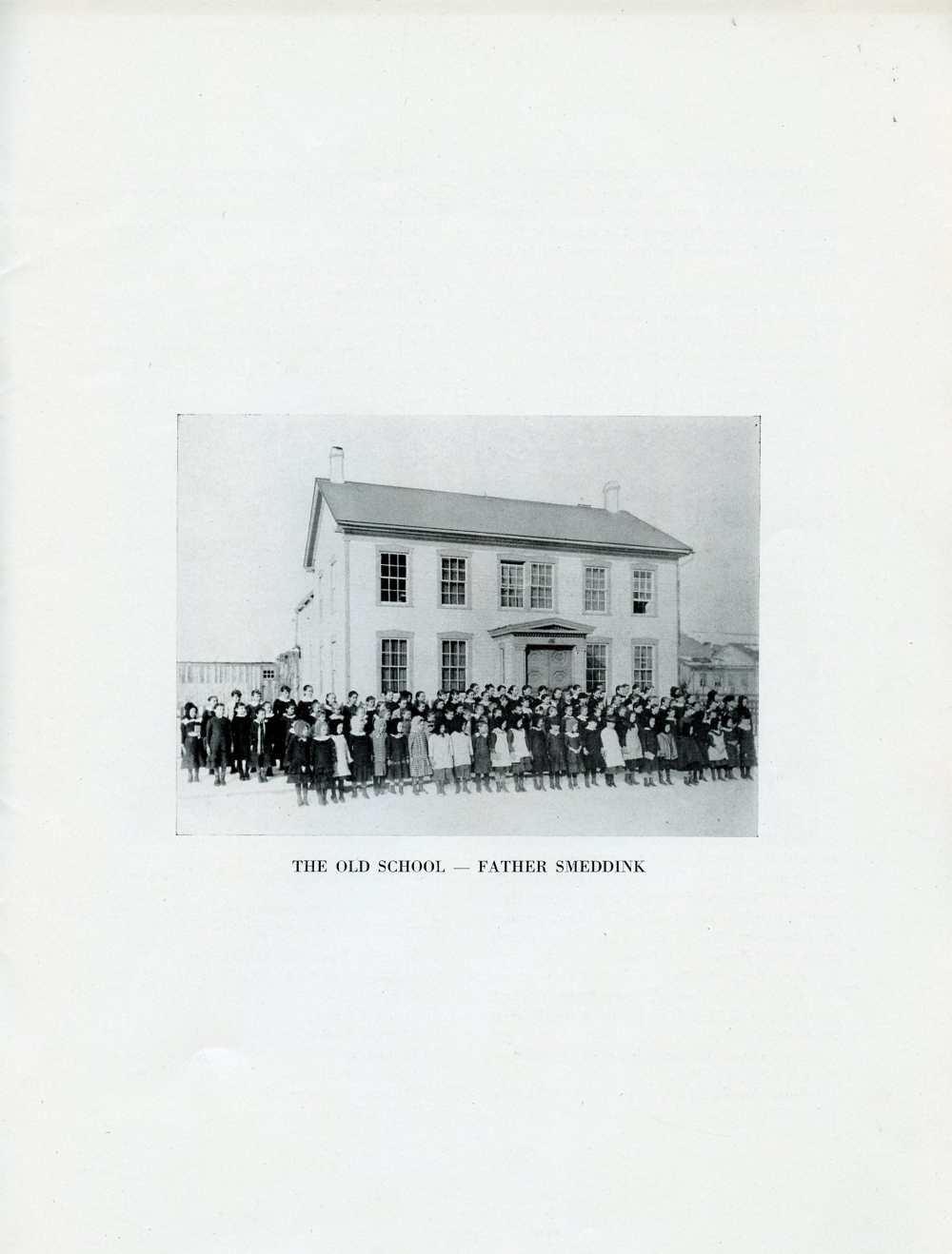 1945 Holy Name Church, Centennial Anniversary, 1845-1945, Sheboygan, Wisconsin, Page 37: The Old School -- Father Smeddink.