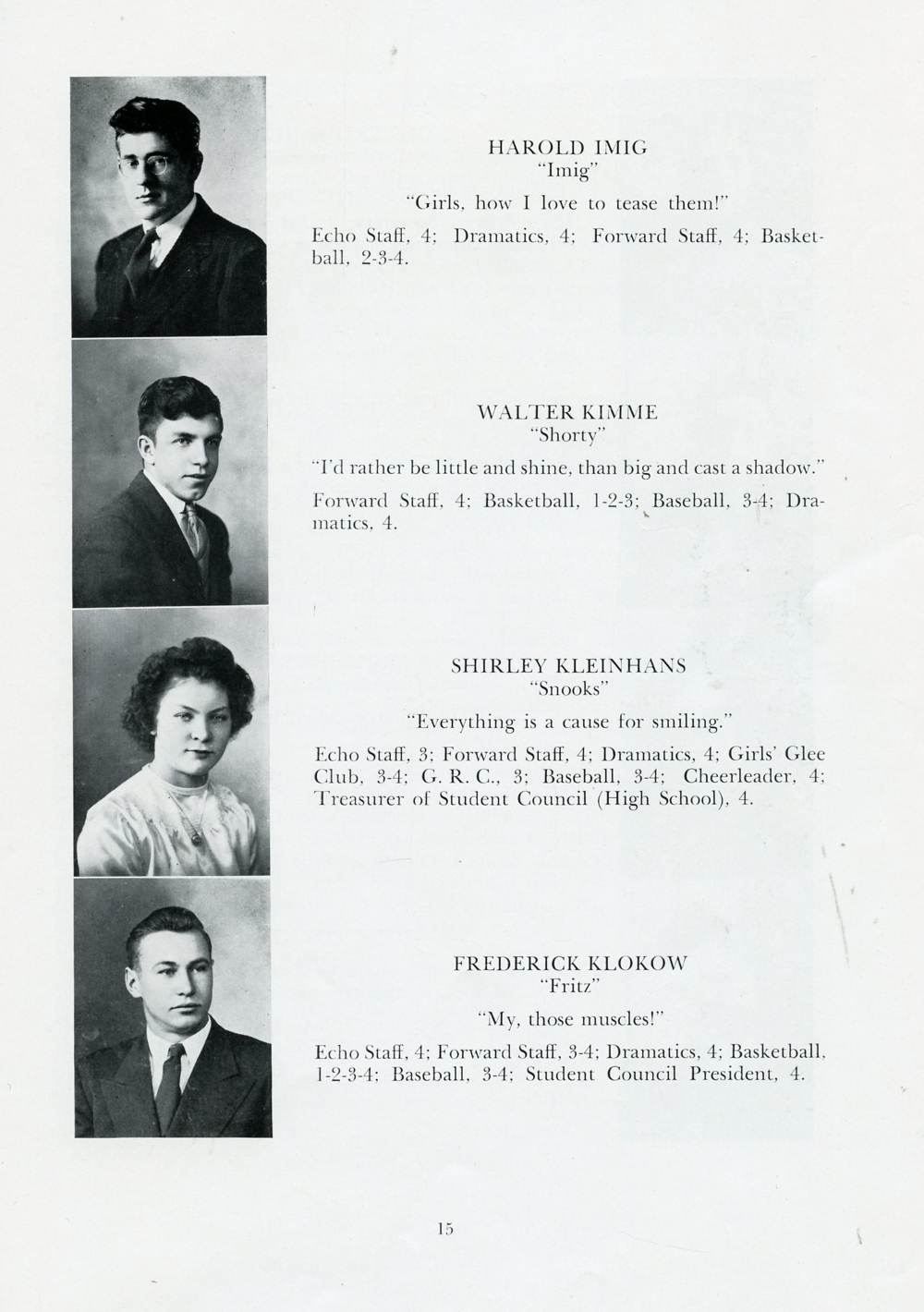 1946 Howards Grove High School, Page 15: Harold Imig, Walter Kimme, Shirley Kleinhans, Frederick Klokow.