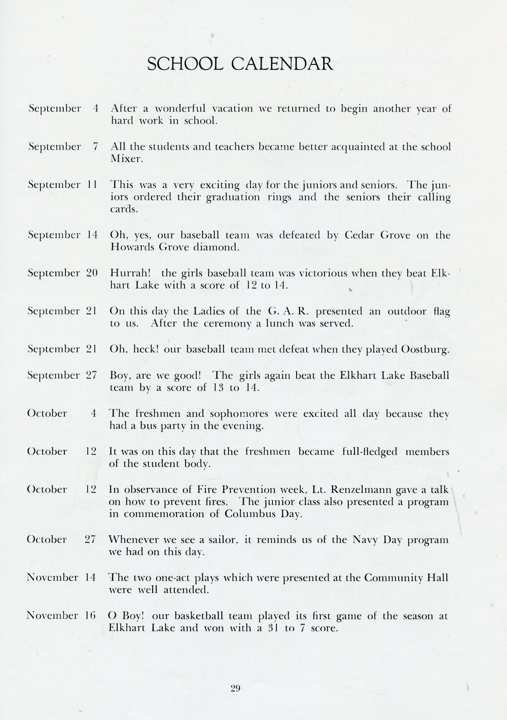 1946 Howards Grove Senior Class Yearbook, Page 29: School Calendar
