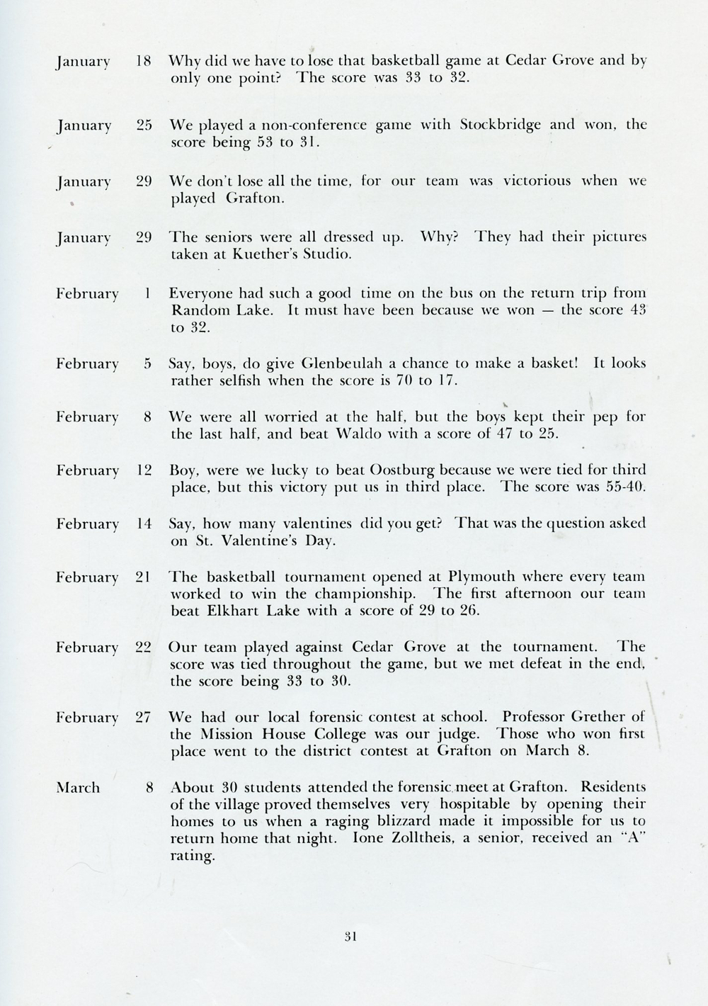 1946 Howards Grove Senior Class Yearbook, Page 31: School Calendar