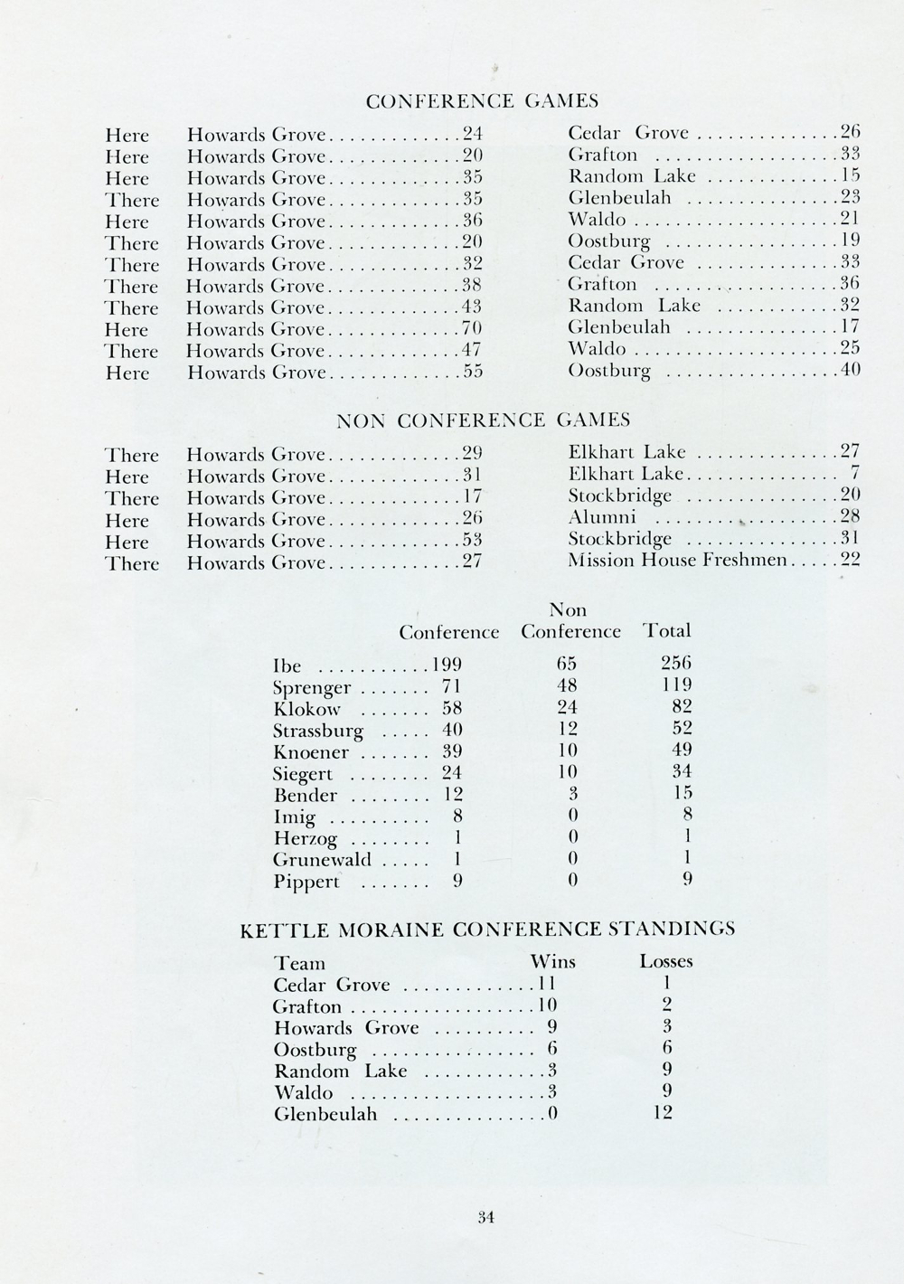 1946 Howards Grove Senior Class Yearbook, Page 34: Basketball