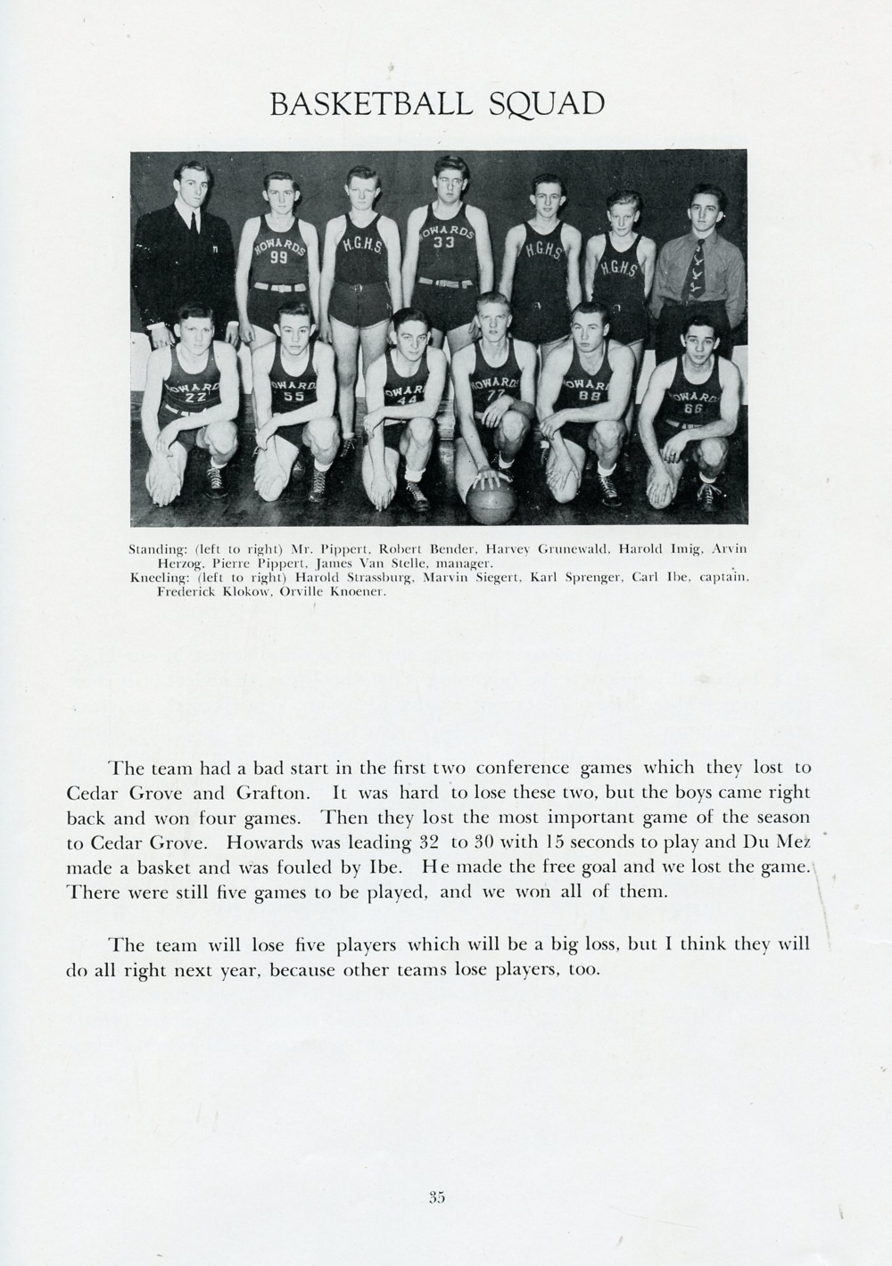 1946 Howards Grove Senior Class Yearbook, Page 35: Basketball