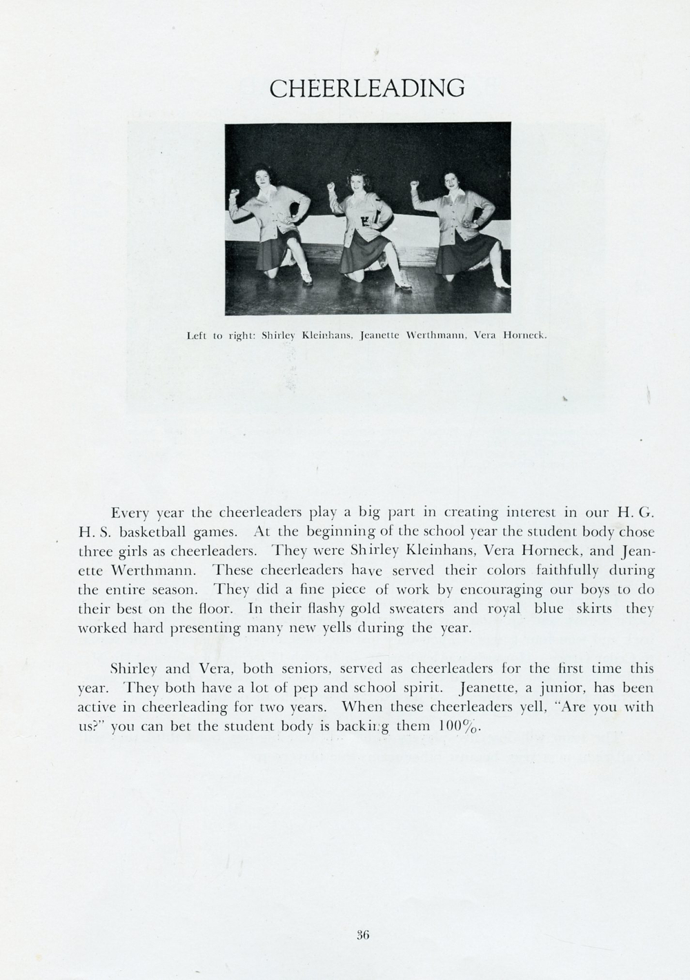 1946 Howards Grove Senior Class Yearbook, Page 36: Cheerleading.