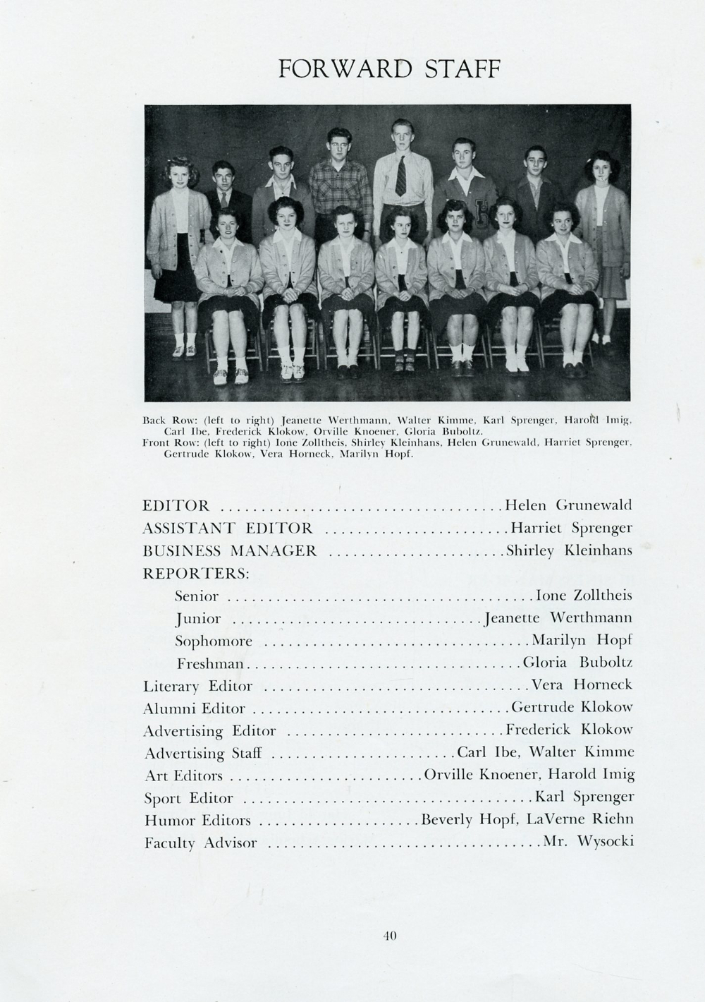 1946 Howards Grove Senior Class Yearbook, Page 40: Forward Staff.