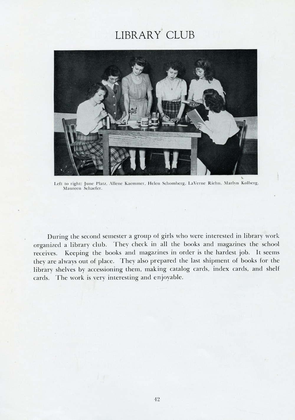 1946 Howards Grove Senior Class Yearbook, Page 42: Library Club.