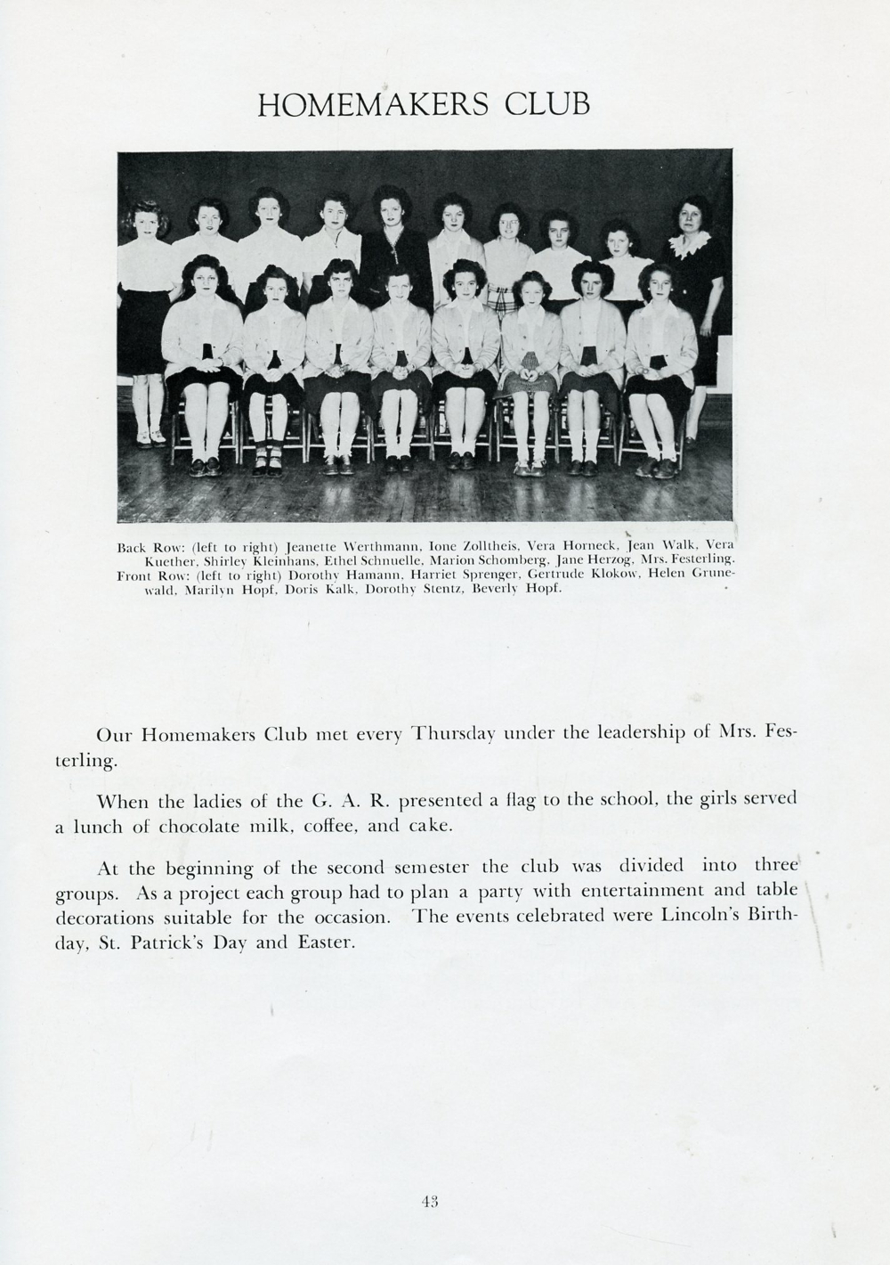 1946 Howards Grove Senior Class Yearbook, Page 43: Homemakers Club.