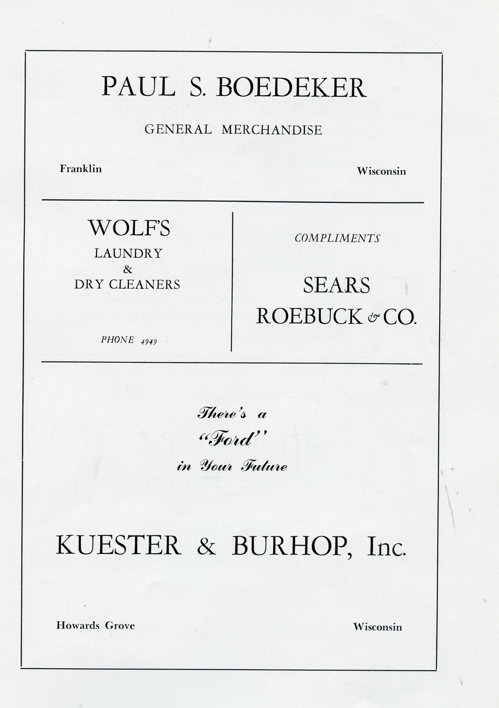 1946 Howards Grove Senior Class Yearbook, Page 61: Paul S. Boedeker, Wolf's Laundry, Sears Roebuck and Co., Kuester and Burhop.