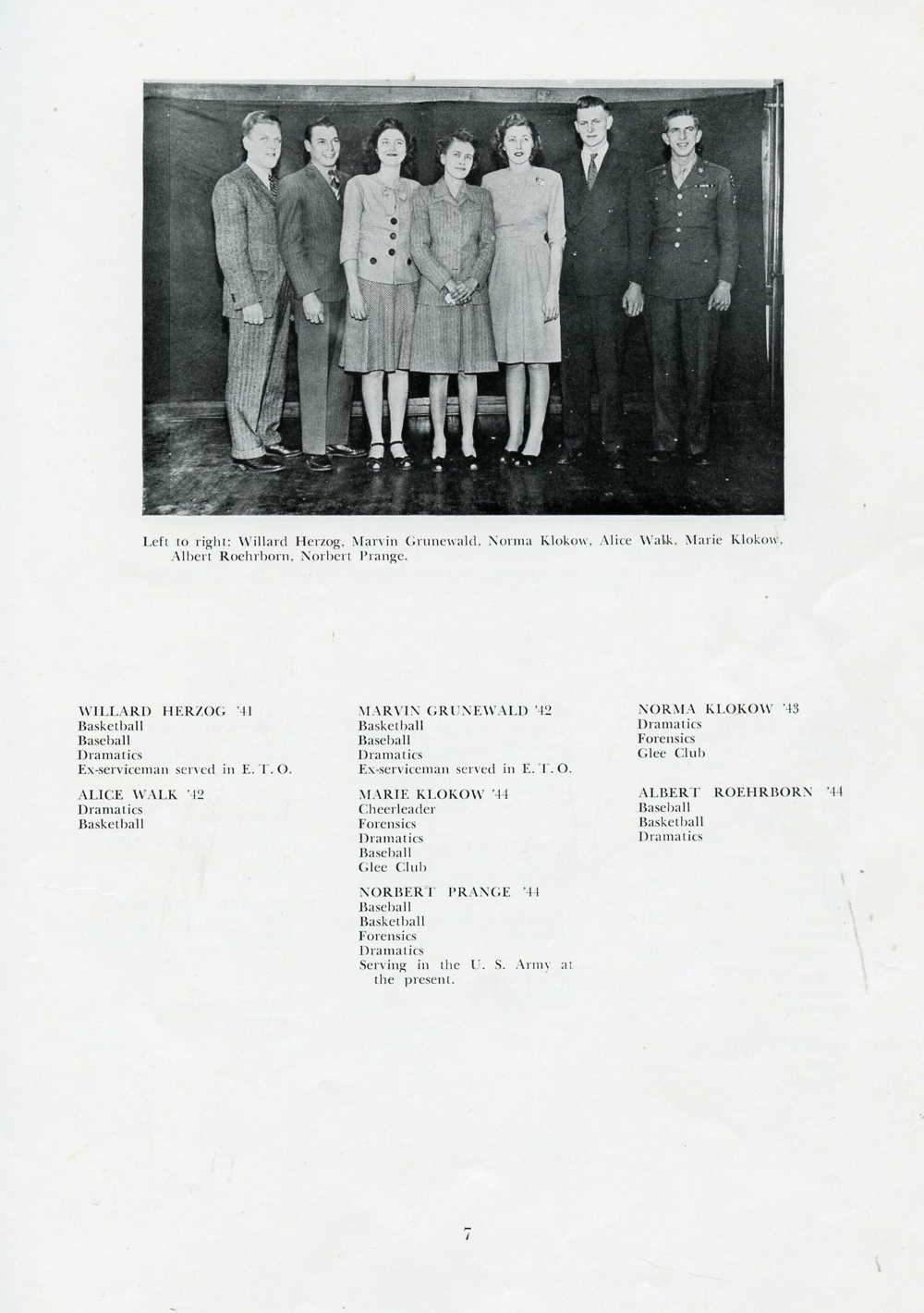 1946 Howards Grove High School, Page 7: Willard Herzog, Alice Walk, Marvin Grunewald, Marie Klokow, Norbert Prange, Norma Klokow, Albert Roehrborn.