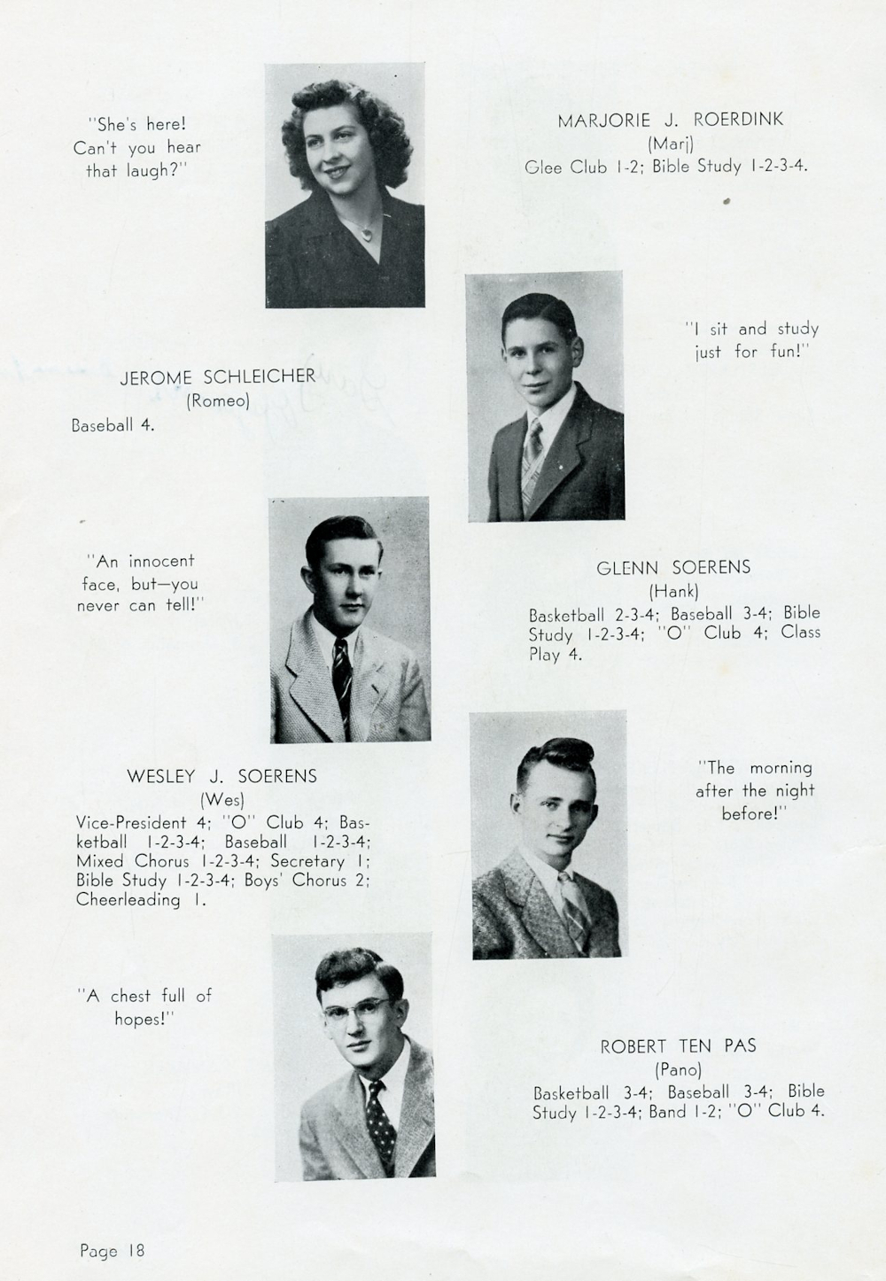 1946 Oostburg High School Page 18: Marjorie J. Roerdink, Jerome Schleicher, Glenn Soerens, Wesley J. Soerens, Robert Ten Pas.